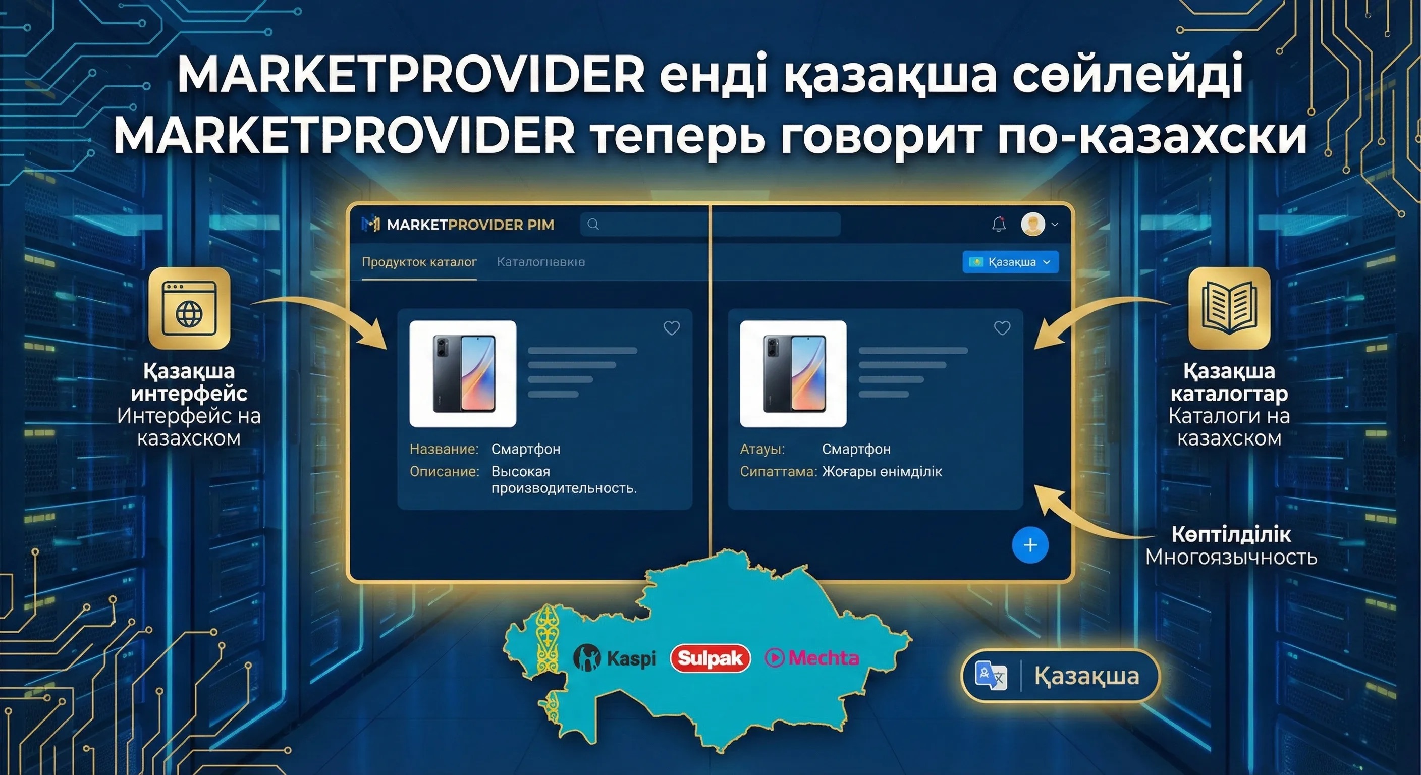 Мы добавили казахский язык в PIM-систему MARKETPROVIDER — теперь вы можете работать с интерфейсом и каталогами на казахском.